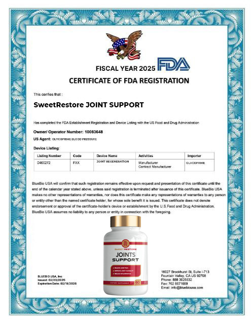According to Barbara, this formula, based entirely on natural ingredients, activates the regeneration of joint tissue, eliminates inflammation, and restores mobility. The remedy is fully certified in the U.S. and meets all strict quality and safety standards, verified by independent experts.